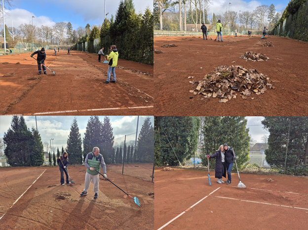 01.03.2025 – Der Frühjahrsputz für unsere vier Plätze konnte in nur knapp zwei Stunden von 10 Mitgliedern recht schnell durchgeführt werden. Zwei unserer Plätze wurden im Winter grundsaniert und von daher war dort viel weniger zu tun als sonst. Im Moment ist unser Platzwart Jörg regelmäßig auf der Anlage und walzt die Courts. Am Samstag 12.4. (Termin vormerken!) findet dann der große Frühjahrsputz um 10 Uhr statt. An dem Tag benötigen wir mindestens 20 fleißige Mitglieder, die unsere Anlage für die Sommersaison 2025 in gemeinschaftlicher Arbeit startklar machen. Wenn der Putztermin dann erfolgreich verlaufen wird, können wir kurz vor Ostern bei entsprechendem Wetter mit glatter Sohle den Spielbetrieb vorsichtig starten. Das sind doch gute Aussichten, oder!