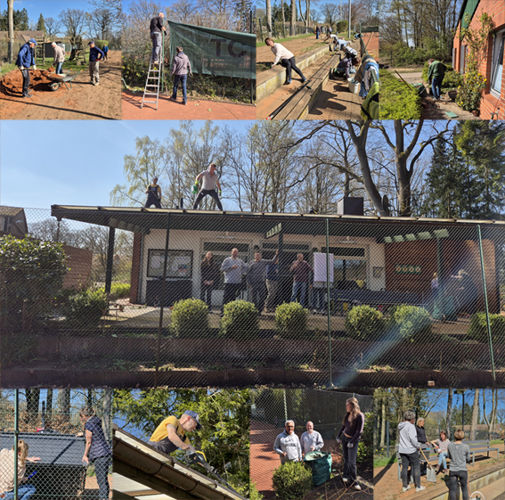 12.04.2025 – Insgesamt 35 Mitglieder haben bei Sonnenschein und fast sommerlichen Temperaturen unsere gesamte Tennisanlage + Clubhaus + Geräteschuppen der Trainer*innen und unseres Platzwartes in einen 1A-Zustand versetzt. Eine wirklich großartige Gemeinschaftsaktion! Zwischendurch gabs Kaffee und mitgebrachten Kuchen sowie Laugengebäck. Zum Abschluss blieben alle in netter Runde zusammen für Würstchen vom Grill und Kaltgetränken. Ab dem 14. April kann auf den Plätzen 1 + 2 mit glatter Sohle bereits gestartet werden. Die im Winter grundsanierten Plätze 3 + 4 bleiben aufgrund der extremen Trockenheit in den letzten Wochen und entsprechend weichem Untergrund vorläufig noch gesperrt.