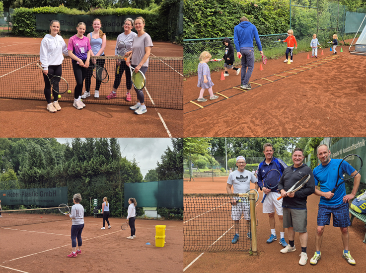 08.06.2025 – Das Vereinsleben des TC Hoisdorf stand am Pfingstsonntag (10 bis 13 Uhr) klar im Vordergrund. Unsere Sportwarte Nico & Holger hatten ein tolles Programm auf die Beine gestellt, an dem alle Spaß hatten. Es konnte einfach jeder mit jedem zusammen Tennis spielen, von Melissa gutes Tennistraining erhalten oder zusammen mit den Kleinsten erste Übungen absolvieren. Zum Abschluss wurde dann noch gemeinsam gegrillt und geklönt. Irgendwie passte heute alles – selbst das Wetter! Denn bis kurz vor und dann wieder direkt nach der Veranstaltung regnete es teils sehr kräftig.