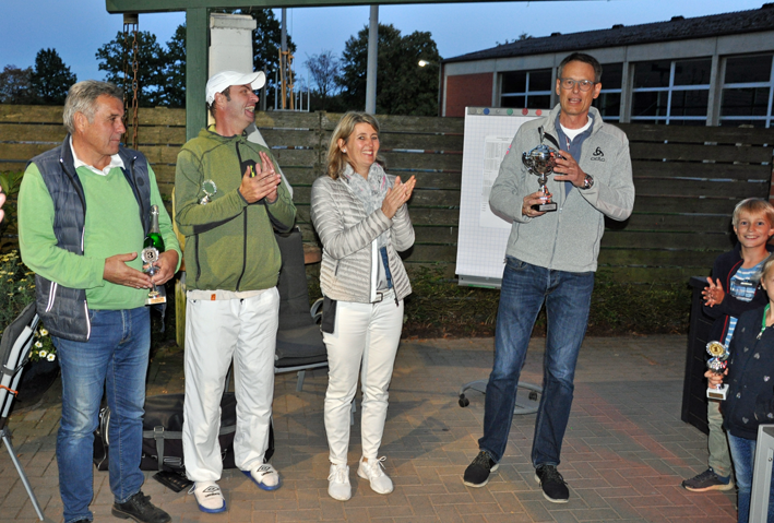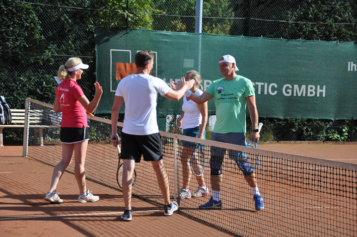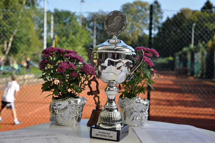 Der Amtspokal 2019, war nach dem Hoisdorfer Jugendturnier das zweite große Tennis-Highlight, das innerhalb von nur 8 Tagen auf unserer Anlage stattgefunden hat. Die Vorbereitungen liefen seit Tagen auf Hochtouren, so dass um Punkt 9 Uhr am 14.9. die ersten vier Spiele parallel stattfinden konnten. Und das, obwohl es bei unserem Team noch zwei kurzfristige und gesundheitlich bedingte Absagen gegeben hat, die dann durch neue Spieler sehr gut kompensiert werden konnten. Vielen Dank für den spontanen Einsatz! Dann der Startschuss. Insg. 36 Spiele mussten zwischen Titelverteidiger TC Siek, TC Brunsbek und TC Hoisdorf absolviert werden. Auf den Plätzen durften wir alles erleben. Spannende Spiele, knappe Entscheidungen, Emotionen und auch Diskussionen. Nach fünf gespielten Runden (20 Spiele) haben wir zum ersten Mal mit 2 Punkten in Führung gelegen. Hoisdorf 8 Siege, Brunsbek u. Siek je 6. Dann wurde es den gesamten Nachmittag über richtig spannend! Nach sechs Runden lautete der Zwischenstand 8/8/8, nach siebeneinhalb Runden bzw. 30 absolvierten Partien 10/10/10. Dramatik pur! Die Entscheidung zu Gunsten der Gastgeber fiel erst im 33. Spiel. Mit dann bereits 13 Siegen und der günstigen Konstellation der restlichen Spiele zwischen den drei Kontrahenten, war uns Hoisdorfern der Titel nicht mehr zu nehmen. Das letzte Spiel des Tages wurde auf Platz 1 bereits unter Flutlicht ausgetragen. Es war das Mixed zwischen Siek und Hoisdorf. Die Spannung war insofern noch hoch, da Brunsbek sich bei einem Hoisdorfer Sieg noch Chancen auf Platz 2 ausgerechnet hatte und die Hoisdorfer Mixed-Paarung Katja / Julian zu dem Zeitpunkt nicht wusste, dass während derem Spiel der Titelgewinn im Einzel Damen 50 bereits fix gemacht wurde. Das Mixed war dazu eines der besten Spiele des Tages und jeder Ballwechsel wurde von den vielen Zuschauern frenetisch gefeiert. Danach gab es bei guter Laune wie gewohnt Sekt für alle auf der Terrasse des Cubhauses. Daran im Anschluss dann die Siegerehrung, die in diesem Jahr von unserem 1. Vorsitzenden Sven vorgenommen werden musste, da aufgrund eines Mißverständnisses kein „Offizieller“ anwesend sein konnte. Fazit: Heute passte einfach alles. Sportwartin Svenja konnte ein tolles und stark aufspielendes Team zusammenstellen, die Herren 5o-Teams sorgten für eine gute und ausreichende Bewirtung und das Wetter war fast hochsommerlich. Außerdem war es wie in jedem Jahr ein nettes und freundschaftliches Zusammenwirken der drei Tennisclubs! Wir freuen uns bereits heute auf das kommende Jahr in Brunsbek, wenn der Amtspokal quasi sein „40-jähriges Jubiläum“ feiert. Fotos siehe unten