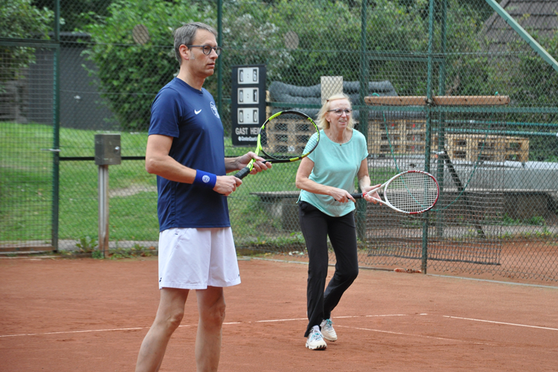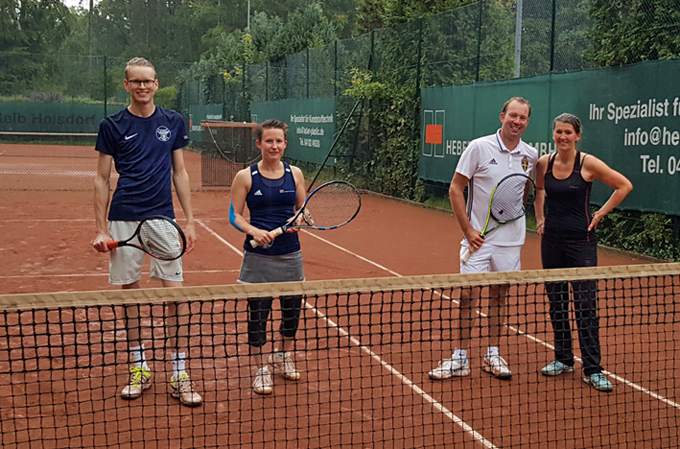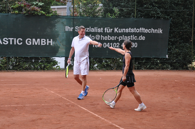 Die Clubmeisterschaften Mixed am 26.09.2020 waren für den TC Hoisdorf im Jahr des 50-jährigen Bestehens der krönende Abschluss. Trotz der Umstände des weiterhin andauernden Coronavirus haben sich 8 Paarungen zusammengefunden, um die diesjährigen Mixed-Clubmeister auszuspielen. In zwei Gruppen zu je vier „Teams“ spielte jeder gegen jeden und die beiden Gruppensieger bestritten am Ende das Finale. Start war um 11 Uhr parallel auf allen vier Plätzen und Pausen waren aufgrund des heranziehenden Regens nicht wie geplant möglich. Eine konditionelle Höchstleistung aller Teilnehmer*innen war also notwendig. Am Ende standen in Gruppe A Svenja/Julian C. und in Gruppe B Julia/Morten ganz vorn. Das Finale zwischen beiden Teams wurde bereits im strömenden Regen ausgetragen und war an Spannung nicht zu überbieten. Dazu war die Stimmung unter den Zuschauern trotz des Wetters ungebrochen. Alle blieben, um den Krimi bis zum Ende zu verfolgen. Ganz, ganz knapp siegten am Ende Svenja/Julian C. mit 7:6, 5:7, 10:8. Im Anschluss dann die Siegerehrung für sämtliche Clubmeister*innen (Einzel, Doppel, Mixed) mit neuen Preisen. Statt der sonst üblichen Wert-Gutscheine gab es für die jeweils Erst- und Zweitplatzierten Handtücher mit entsprehendem Aufdruck, was insgesamt als sehr gut bewertet wurde. Ein besonderer Dank gilt den Zuschauern des heutigen Tages!