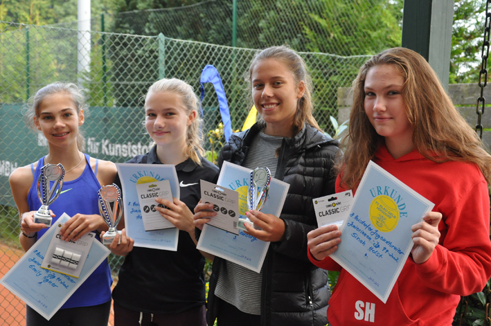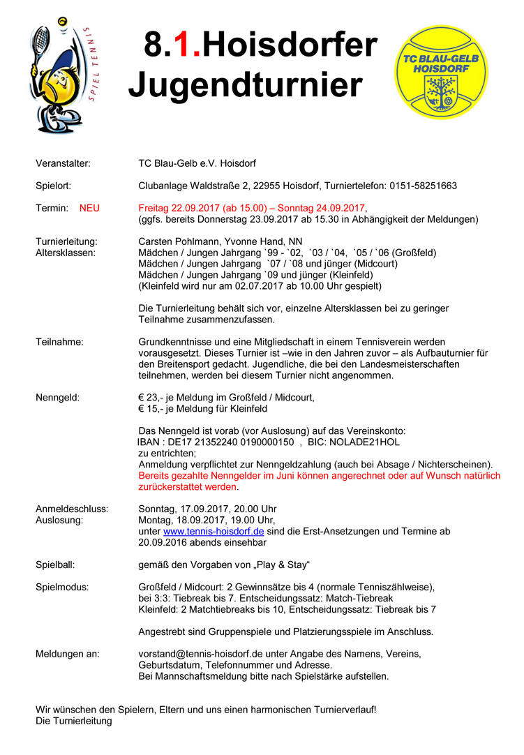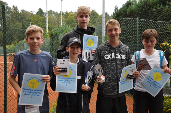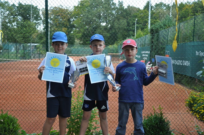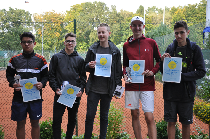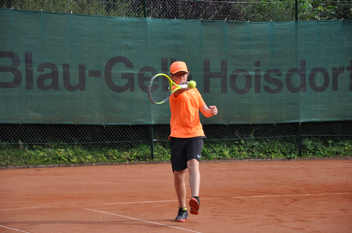 Um 16 Uhr am Sonntag, 24.09. wurde mit dem entscheidenden Matchball das Finale der Junioren beendet und somit auch das gesamte Jugendturnier 8.1. An drei Tagen wurden den Eltern, Teilnehmern und den Zuschauern auf der Anlage des TC Hoisdorf spannende Spiele geboten. Schlechtes Wetter, wie noch Anfang Juli, als die Veranstaltung abgesagt werden musste, gab es zum Glück nicht. Die Turnierleitung hatte es trotzdem nicht leicht. Es gab viele Dinge zu berücksichtigen, wie z. B. zeitliche Wünsche oder Tage, an denen einige Jugendliche / Kinder gar nicht konnten. Dazu kamen nach dem ersten Turniertag noch 3 krankheitsbedingte Ausfälle, die den Spielplan ein wenig durcheinander brachten. Zum Sportlichen: In insg. 7 Kategorien wurden Partien absolviert – sämtliche Spielerinnen und Spieler kamen dabei an mindestens 2 Tagen zum Einsatz. Die 4 Kleinfeld-Teilnehmer spielten „Jeden gegen Jeden“ und das jeweils zweimal. Die 2 Spieler aus Bad Oldesloe belegten am Ende Platz 1 und 2. Im Midcourt-Wettbewerb konnten sich 2 Mädchen im Feld von 4 Jungs sehr gut behaupten. Alle anderen Altersklassen haben Ihre Partien auf dem ganz normalen Feld ausgetragen. Sämtliche Spiele an den 3 Tagen waren toll anzusehen, so dass man sich als neutraler Betrachter nur sehr schwer entscheiden konnte, welcher Partie man am Spielfeldrand beiwohnen möchte. Auf jeden Fall konnte man im Rahmen der Siegerehrungen erkennen, dass es den meisten letztendlich auch viel Spaß bereitet hat. Das Team rund um Jugendwartin Yvonne Hand hat eine Menge organisiert und koordiniert und somit dazu beigetragen, dass es quasi im 2. Anlauf eine tolle Veranstaltung wurde. Ein großes Dankeschön dazu an die Mannschaften „Damen 30, 40 und 50“, die über das gesamte Jugendturnier hinweg die Bewirtung hervorragend abgewickelt haben. Auf jeden Fall wird es ein 9. Hoisdorfer Jugendturnier im Jahr 2018 geben. Wir würden uns darüber freuen, alle Teilnehmer im nächsten Jahr wieder begrüßen zu können. (Der Termin wird Ende diesen Jahres auf der Website veröffentlicht)