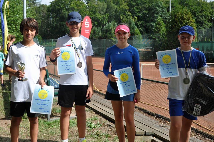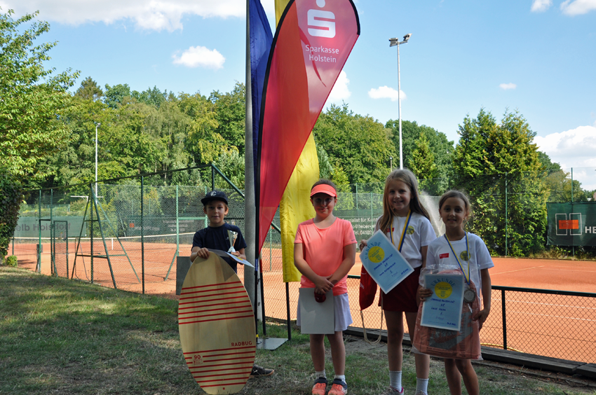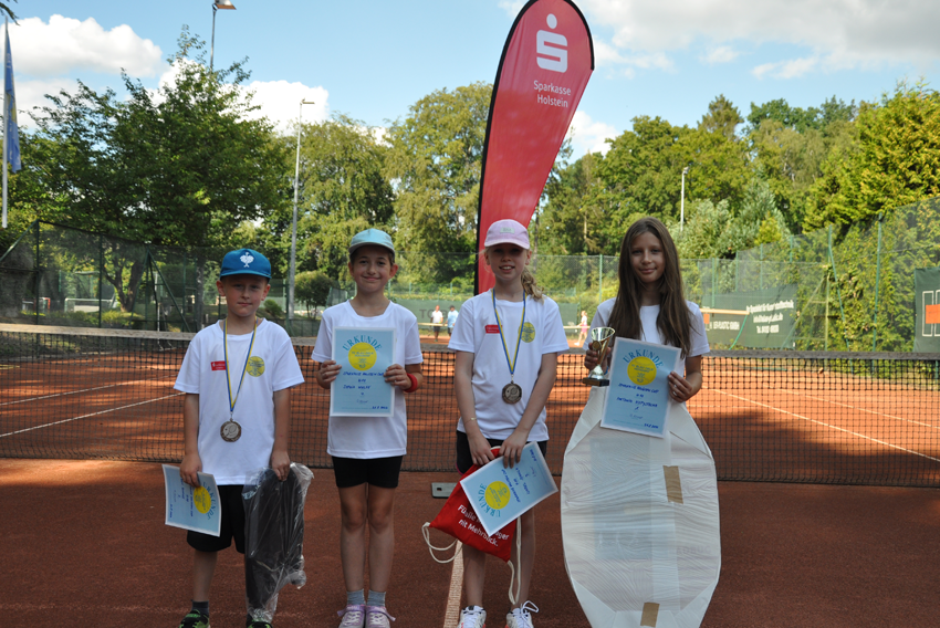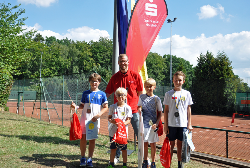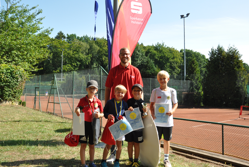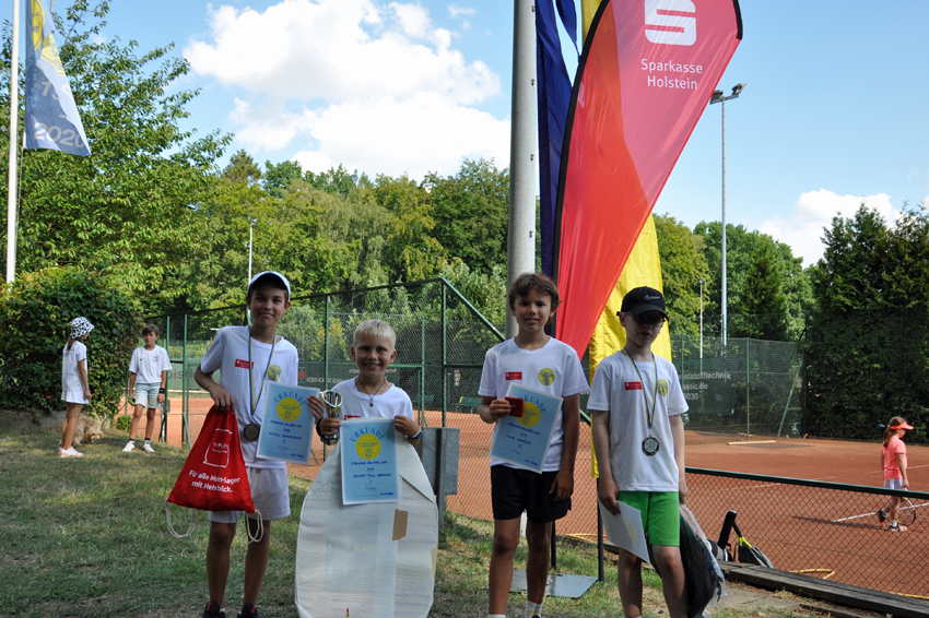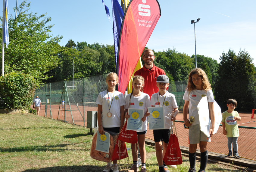 Wow – der Sparkasse Holstein-Cup 2022 am 20./21. August war bis dato das Highlight des Jahres 2022 für den TC Blau-Gelb e.V. Hoisdorf. Das Tennis-Jugendturnier wurde erneut sehr gut angenommen und besonders am zweiten Tag der Veranstaltung, als die jüngeren Altersklassen U10 und U8 gespielt wurden, sind noch weit mehr Eltern und Zuschauer auf die Anlage gekommen als am ersten Veranstaltungstag. Im Rahmen der Kleinfeld- und Midcourt-Spiele sammelten einige Kinder ihre ersten Turniererfahrungen und haben dabei gute und stets faire Begegnungen absolviert. Dazu standen auf jedem Platz immer Jugendliche bereit, die als Schiedsrichter fungierten und teils beim Zählen unterstützt haben. Im Rahmen der Siegerehrungen am Sonntag konnte auch Herr Peters, Filialleiter Großhansdorf, des Sponsoren Sparkasse Holstein zugegen sein und hat gemeinsam mit unserem Jugendwart Patrick die Siegerehrung durchgeführt. Zusätzlich zu den ohnehin attraktiven Preisen überraschte Herr Peters mit zusätzlichen Kleinigkeiten den Nachwuchs. Am ersten Turniertag, dem Samstag, wurden genau um 9 Uhr sämtliche Vorbereitungen durch das Orga-Team abgeschlossen und die Spiele für die Wettbewerbe U14 und U12 konnten somit pünktlich beginnen. In den ersten Partien konnte man gut beobachten, dass diese Altersklassen bereits mehr Spiel- und Turniererfahrung mitbringen als die jüngeren Jahrgänge. Packende und teilweise sehr lange Spiele, die oft über mehrmaligen Einstand und am Ende über ein Matchtiebreak erst zur Entscheidung gefunden haben. Die allerletzte Partie lief somit auch knapp anderthalb Stunden über das geplante Ende um 16 Uhr hinaus. Das Match war aber so spannend und voller Dramatik, dass keinem der anwesenden Zuschauer langweilig wurde. Da es bei den vielen Siegerehrungen des Wochenendes ausschließlich positives Feedback gegeben hat, steht bereits schon heute fest, dass der Sparkasse Holstein-Cup auch im Jahr 2023 in Hoisdorf stattfinden wird. Zu guter Letzt noch einmal ein großes Dankeschön an Jugendwart Patrick, der das bigpoint-Turnier großartig organisiert hat! Das Gleiche gilt für den Großteil der Hoisdorfer Trainer*innen, die mit Leidenschaft unterstützt haben. Nicht unerwähnt bleiben darf der Einsatz unserer Damen, die am Sonntag die Bewirtung komplett übernommen haben und das, wo sie am Vorabend erst um 23 Uhr von ihrem eigenen Punktspiel in Kiel zurückgekommen sind. Danke, Danke, Danke für dieses Engagement für den TC Hoisdorf!