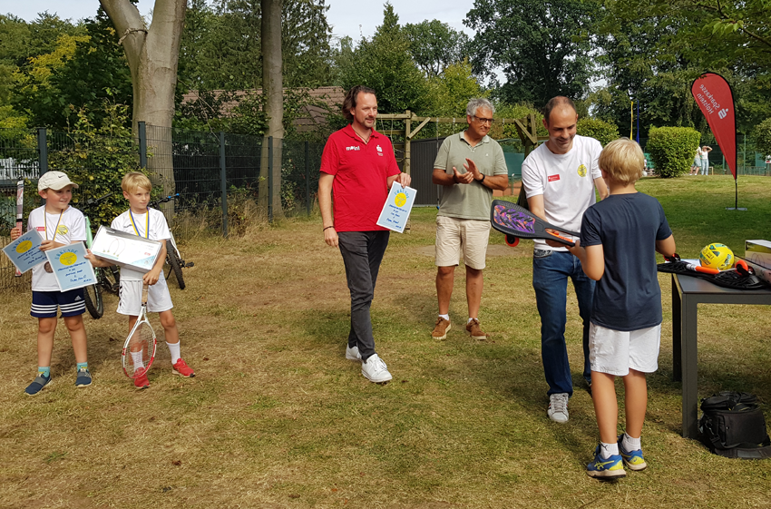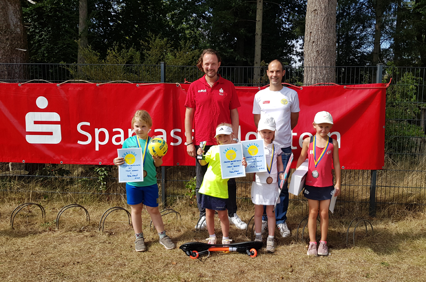 07./08. September 2024 – Das große Hoisdorfer Tennis-Jugendturnier, der Sparkasse Holstein-Cup 2024, wurde in diesem Jahr wieder an beiden Tagen des Wochenendes ausgetragen, denn mit knapp 43 Anmeldungen in den Altersklassen U8, U10, U12 und U15 wäre ein Tag nicht ausreichend gewesen. Unsere neue Jugendwartin Antje Hellwig (seit 3/24) hat im Vorfeld gemeinsam mit Ex.-Jugendwart Patrick Habscheid das Turnier großartig vorbereitet. Es konnten dank des Kooperationsvertrages mit der Sparkasse Holstein wieder tolle Sachpreise für alle Teilnehmerinnen und Teilnehmer organsiert werden, so dass es letztendlich nur Sieger gegeben hat. Am Samstag fanden die Wettbewerbe der älteren Altersgruppen statt. Die Spiele waren spannend und teils auf sehr hohen Niveau. Die letzte Partie endete erst gegen 19:30 Uhr nach dem Match-Tie-Break. Am Sonntag kamen dann die Jüngeren ins Spiel. Auf Kleinfeldern wurden die Partien ausgetragen und von den Trainerinnen und Trainern des TC Hoisdorf unterstützend begleitet.  Die Siegerehrungen wurden je Wettbewerb einzeln durchgeführt. Am Sonntag führte diese dann Rüdiger Hahnkow, Leiter Privatkunden der Sparkasse Holstein, gemeinsam mit Patrick Habscheid durch. Leider hatte das Turnier in diesem Jahr einen bitteren Beigeschmack, denn in der Nacht vor der Veranstaltung wurde in unser Clubhaus eingebrochen und vieles beschädigt! Da fragt man sich, wie verrückt das ist, denn unser Clubhaus wird nicht bewirtet und somit ist kein Geld im Umlauf…die Verbrecher gingen also leer aus. Den Ärger haben wir im Anschluss durch den intensiven Austausch mit den Versicherungen…