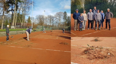 24.02.2024 – Insgesamt neun Personen rückten an, um an einem schönen sonnigen Tag im Februar die vier Plätze so vorzubereiten, dass nur zwei Tage später die Firma Kates mit der professionellen Platzaufbereitung beginnen konnte. Unser Platzwart Jörg ist seitdem regelmäßig im Einsatz und kümmert sich um die weiteren Schritte und vor allem darum, dass die Plätze die gesamte Saison über in einem guten Zustand sein werden. Damit sind wir erneut einer der ersten Clubs, die so früh damit starten und voraussichtlich am 22. April die Plätze für den Trainingsbetrieb freigeben können.