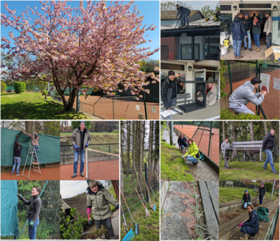 20.04.2024 – Der Samstag stand ganz im Zeichen des Frühjahrsputzes beim TC Blau-Gelb e.V. Hoisdorf. In einer vierstündigen gemeinschaftlichen Aktion wurde die gesamte Anlage für den Spiel- und Trainingsbetrieb startklar gemacht. Auch wenn es zwischendurch immer  wieder kurz regnete, ließen sich die fleißigen Mitglieder nicht von ihrer Arbeit abhalten. Dazu wurde der neue Gas-Grill aufgebaut, der bei zukünftigen Veranstaltungen sicherlich häufiger zum Einsatz kommen wird.  In der ersten Woche, bis zur Abnahme der Hinweisschilder, darf nur mit glatter Sohle gespielt werden, damit die frisch aufbereiteten Plätze anfangs noch geschont werden.
